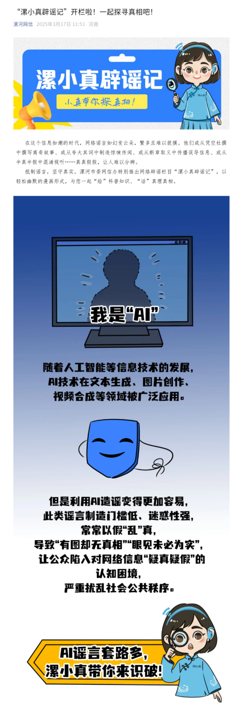 变的是方法。您的每一次举报,都在重塑我们守护网络的方式。曾几何时,我们是“接到举报再出动”;如今,我们学会“抢跑”。与其等谣言发酵后再扑救,不如把功夫下在平时。于是,《辟谣传声社》《漯小真辟谣记》《“漯小举”课堂》三大特色品牌应运而生。我们把相声、快板等传统曲艺融入辟谣,让真相在笑声中传播;我们让“漯小真”走进漫画场景,用一帧帧画面拆解谣言套路;我们请“漯小举”当主角,谈科普知识、聊真理真相。用老百姓听得懂的话,把辟谣知识送到您的手机屏幕上。让您在遇到下一条可疑信息时,能多一分警惕,少一次转发。